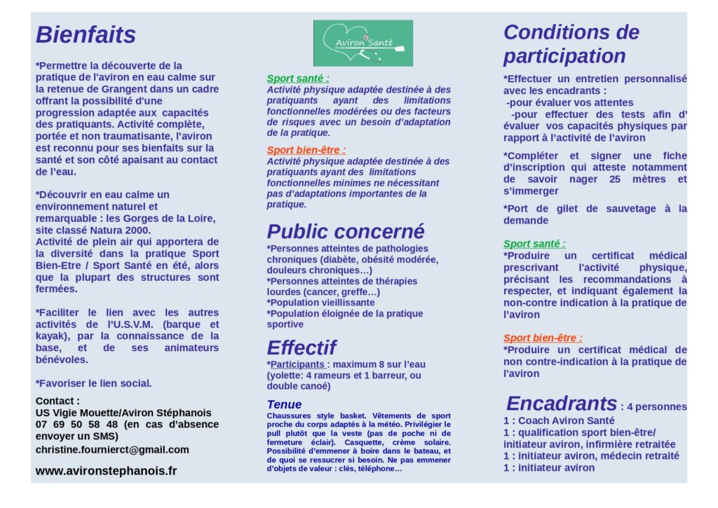A l’US Vigie Mouette, l’aviron et le canoë-kayak sont référencés sur la plateforme Sport Santé et Sport Bien-Etre de l’Agence Régionale de la Santé.